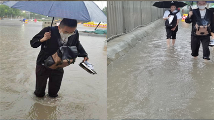 16點(diǎn),紅圈運(yùn)營團(tuán)隊的幾名同事剛剛結(jié)束對一家客戶拜訪,正在前往另一家客戶的路上,此時雨水已經(jīng)淹沒膝蓋。