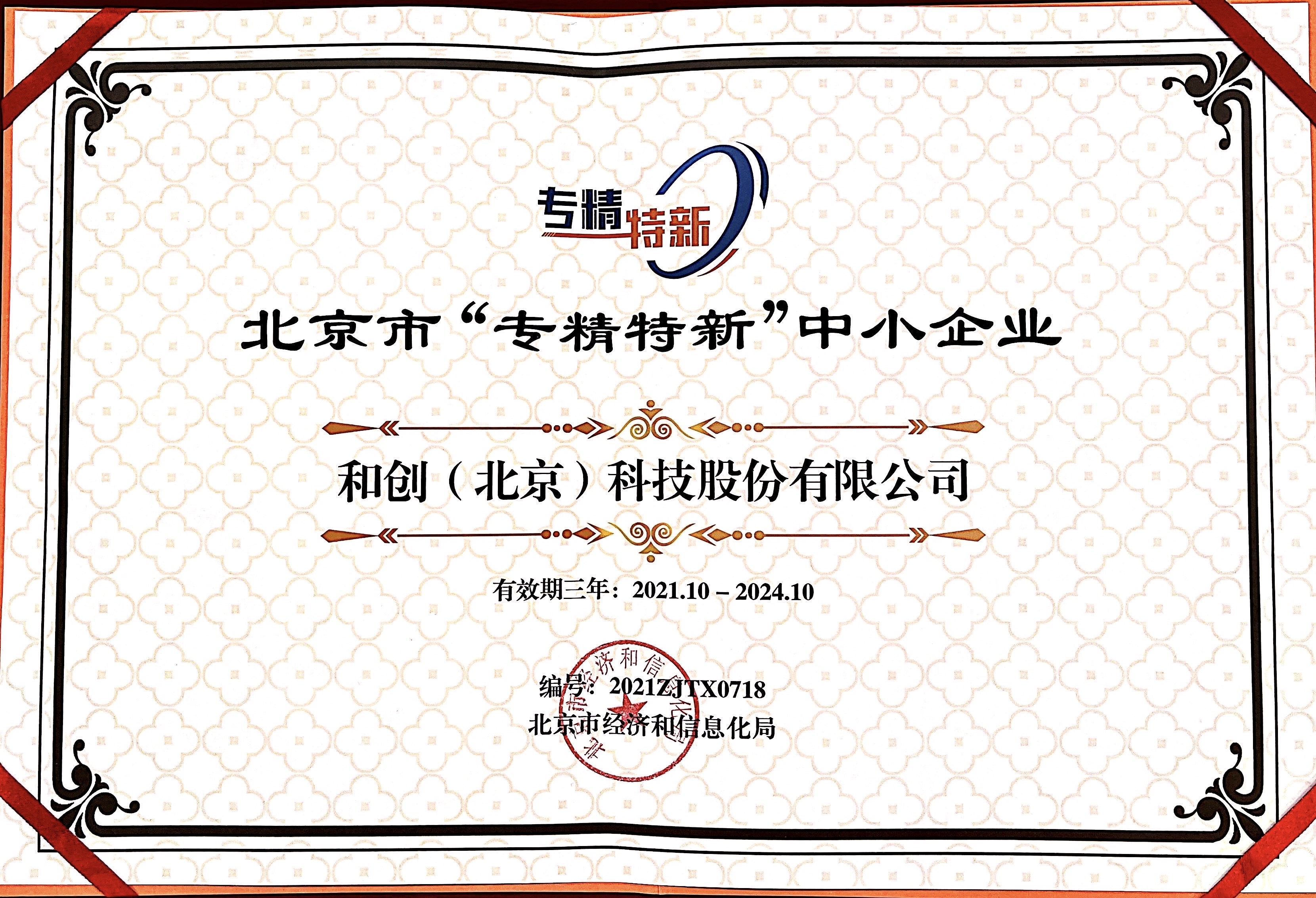 和創(chuàng)科技:被認定為北京市“專精特新”中小企業(yè)