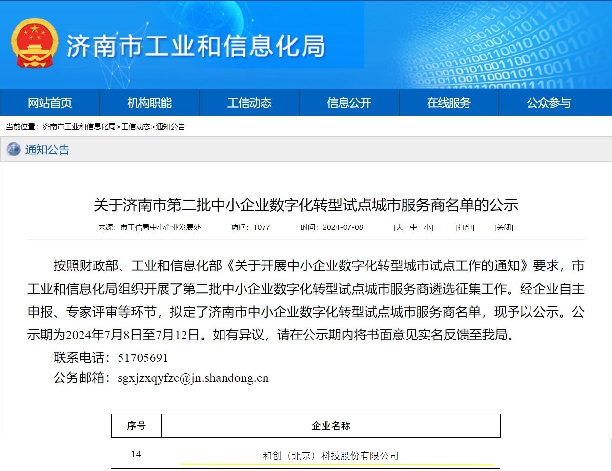 近日,濟(jì)南市工業(yè)和信息化局正式公布了濟(jì)南市第二批中小企業(yè)數(shù)字化轉(zhuǎn)型試點(diǎn)城市服務(wù)商名單,和創(chuàng)(北京)科技股份有限公司(以下簡(jiǎn)稱“和創(chuàng)科技”)憑借其深厚的行業(yè)知識(shí)積累、卓越的SaaS系統(tǒng)實(shí)施能力以及完善的行業(yè)服務(wù)生態(tài),成功入選該名單,標(biāo)志著和創(chuàng)科技在數(shù)字化轉(zhuǎn)型領(lǐng)域的實(shí)力和成就得到了官方的高度認(rèn)可。
