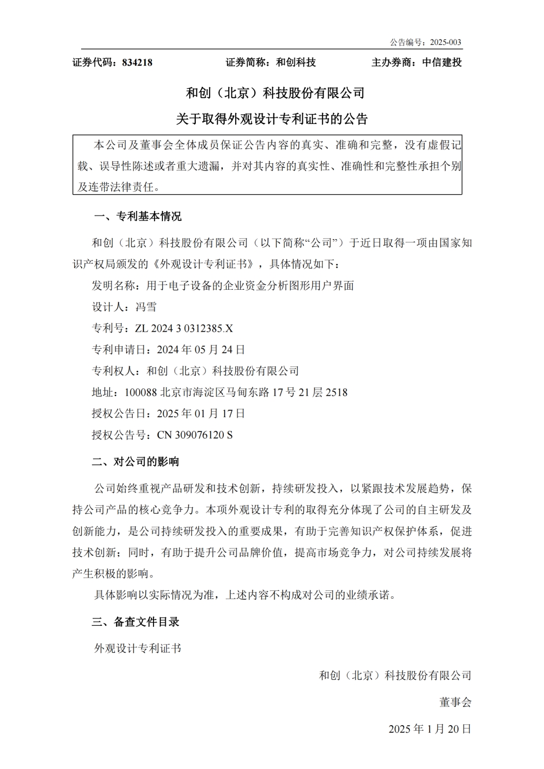 在2025年的新春之際,和創(chuàng)科技以其卓越的創(chuàng)新能力和深厚的技術(shù)底蘊(yùn),迎來(lái)了科技研發(fā)的新里程碑——連續(xù)榮獲兩項(xiàng)最新專利認(rèn)證,分別是外觀發(fā)明專利《用于電子設(shè)備的企業(yè)資金分析圖形用戶界面》以及發(fā)明專利《一種數(shù)據(jù)處理方法、裝置及電子設(shè)備》。這兩項(xiàng)專利的取得,不僅標(biāo)志著和創(chuàng)科技在數(shù)字化資金管理領(lǐng)域的又一次重大突破,更為廣大工程企業(yè)用戶帶來(lái)了更為高效、便捷的資金管理解決方案。