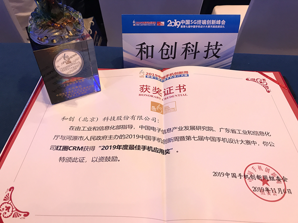 紅圈CRM榮獲2019中國5G終端創(chuàng)新峰會“2019最佳手機應(yīng)用天鵝獎”